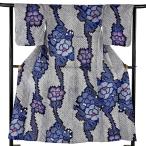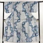 浴衣 身丈162cm 裄丈63cm S 絞り浴衣 草花 青 綿 名品 中古