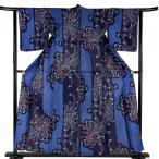 美品 浴衣 身丈152.5cm 裄丈62cm S 絞り浴衣 草花 流水 青 綿 名品 中古