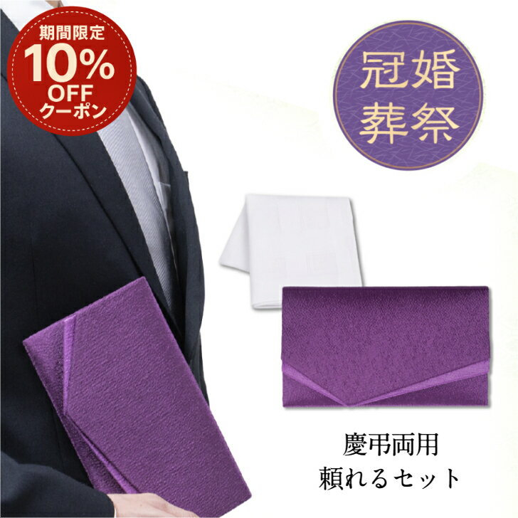 【新生活応援SALE 10%offクーポン】 ふくさ 慶弔両用 紫 ちりめん お葬式 結婚式 女性 男性 服紗 袱紗 金封 祝儀袋 香典 ハンカチ セット Kugusa \レビュー特典あり/