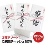 ご祝儀ティッシュ 20W(ポリタイプ) 3種ランダムアソート 250個セット(1c/s) 2枚重ね 20枚入 無地 無香料 名刺ポケット付き