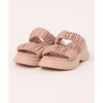 サンダル 「sesenta」ふわふわ厚底ギャザーパデットダブルベルトサンダル レディース
