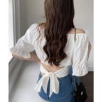 ブラウス シャツ 「五色展開 」ボリュームスリーブバックリボンショート丈2WAY半袖トップス/短丈ブラウス レディース