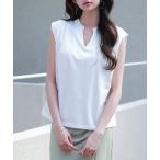 tシャツ スタンドキーネックタックカットソートップス レディース