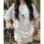 tシャツ レースリボン半袖Tシャツ レディース