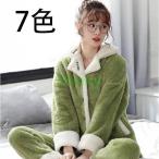 パジャマ 上下セット 2点セット ルームウエア レディース 女性用 暖かい 防寒 秋冬 部屋着 寝巻き 楽チン 厚手 無地 きれいめ 柔らかい