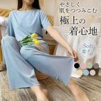 パジャマ レディース 上下セット 半袖 ロングパンツ ルームウエア 冷感素材 盛夏向き 女性用 涼しい 部屋着 寝巻き 無地 きれいめ 柔らかい
