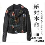 レザー レディース ライダース 革ジャン バイク アウター 刺繍 カジュアル 上品 撥水 防寒 防風 通勤 花柄 高級感 快適