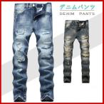 デニムパンツ メンズ ジーンズ スキニー 欧米風 パンツ ストレッチ スリム ボトムス ズボン ダメージ加工 ユーズド加工 着痩せ 無地 大きいサイズ
