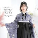 袴 セット 女性 4点セット「二尺袖:アフタヌーンティー ウィスタリアグレー+袴:黒+袴下帯:白 麻の葉+襦袢」 女性 お仕立て上がり 二尺着物 (メール便不可)