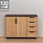 爆買 キャビネット 完成品 リビング収納 4段 120cm幅 サイドボード 引き出収納 幅120 開き戸収納 ラバーウッド スライドレール 木目