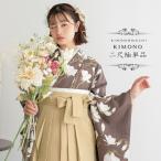 袴 セット 卒業式 女性 4点セット「二尺袖:白木蓮 藤墨色+袴:アイスグレー 椿+袴下帯:テールグリーン 七宝+襦袢」S/M/L/LL サイズ 卒業式(メール便不可)