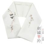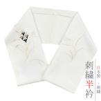 半衿 半襟 振袖 成人式 刺繍 正絹 白地 黒 金 銀 干支 向い干支 子午 己香小紋 紗綾形 和柄 非対称 個性的 ユニーク おしゃれ No.8-2745