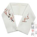 半衿 半襟 振袖 成人式 刺繍 正絹 白地 黒 金 茶 ピンク 干支 向い干支 辰戌 己香小紋 梅 木 紗綾形 和柄 非対称 個性的 ユニー No.8-2746