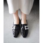 ローファー かかとが踏めるビジューモチーフローファー レディース