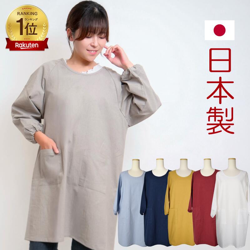 【楽天1位】ロング割烹着 日本製 無地 ラグラン袖 かっぽう着 おしゃれ ロング丈 コットン シーチングワッシャー 綿100