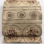 袋名古屋帯 優品 かつら錦 一重太鼓 丸文 花鳥 銀糸 薄茶色 正絹 中古