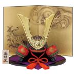 五月人形 コンパクト 陶器 小さい 兜 かぶと/ 金彩出世兜(菊唐草・龍虎屏風付) /こどもの日 端午の節句 初夏 お祝い 贈り物 プレゼント
