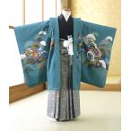 七五三 レンタル 5歳 男の子 グリーンかぶとに荒波《身長》120cm前後★簡単な着付けマニュアル付き! 子供 着物レンタル 羽織 袴レンタル 753 卒園式 結婚式