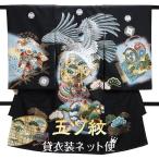 産着 レンタル お宮参り レンタル 男の子 着物 五つ紋 黒 鷹・かぶと 服装 赤ちゃん 祝い着 初着 送料無料 FALB-59