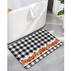 【並行輸入品】バスルームマット 感謝祭 秋 かぼちゃ カエデの葉 ブラック ホワイト バッファロー チェック チェック 速乾 バスルームラグ 滑