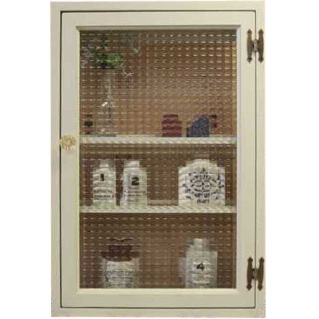 【期間限定10%OFF】アンティークホワイト チェッカーガラスの長方形キャビネット パンプキンノブ・マグネット仕様 40×10×60cm(ニッチ用埋め込みタイプ) オーダーメイド
