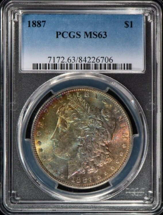 1887-P モルガン銀貨 MS63 モンスタートーン ブルーグリーン パンプキン ゴールド表面