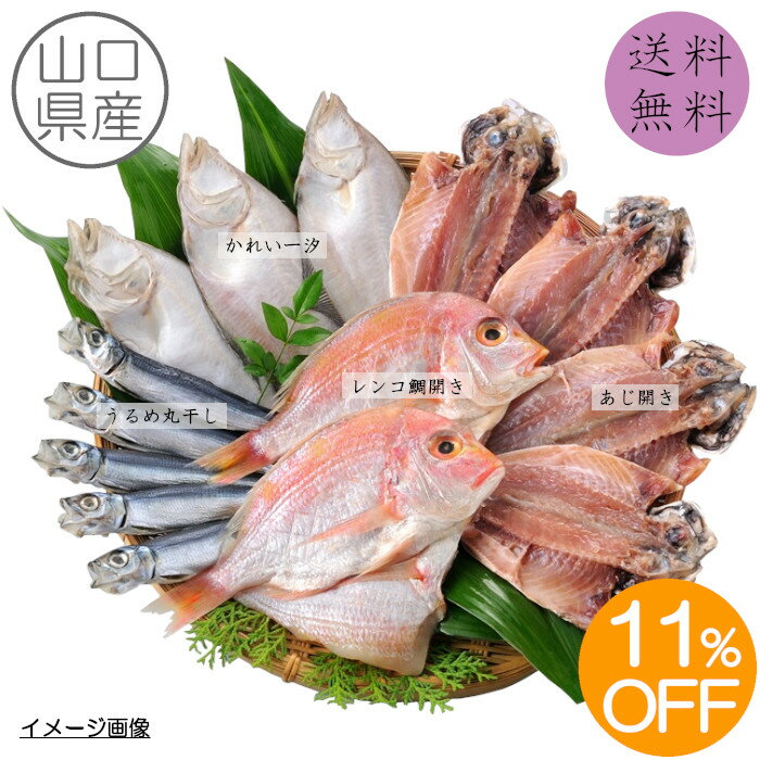【送料無料】 【期間限定15%OFF 5,400円→4,590円】 山口魚急便[K-1] 山口県産 あじ開き かれい一汐 連子鯛開き するめいか開き うるめ丸干し 長門 仙崎 萩 下関 水揚げ ひもの 干物 詰合せ ギフト お祝い 朝食 酒の肴 おかず おつまみ