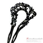 かんざし バチ型 留袖 髪飾り 50代 黒留袖 色留袖 成人式 振袖 袴 留袖 訪問着 色無地 べっ甲風 黒 唐草 透かし柄 ラインストー No.9-4233
