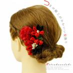 髪飾り 成人式 つまみ細工 赤 振袖 袴 浴衣 夏祭り 花火大会 3点セット 黒 ちりめん ヘアアクセ かんざし 和装 着物 No.9-3615