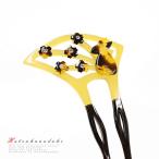 かんざし バチ型 留袖 髪飾り 50代 黒留袖 色留袖 成人式 振袖 袴 花 べっ甲風 黄色 黒 白 パール 透かし彫り かわいい 日本製 No.8-2693