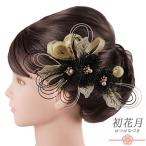 髪飾り 成人式 水引 ゴールド 振袖 袴 花 黒 組紐 玉飾り リーフ ビーズ 大きい 小さい 2点セット 着物 和装 かんざし コーム U No.9-5610