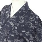 中古 小紋 リサイクル 着物 正絹 青 松竹梅 菊 楓 帆船 千鳥 櫛 かんざし 身丈164cm 裄66cm Mサイズ 友禅染 丹後 ちりめん カジュアル No.i3-0783