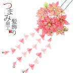 (Prices down3)成人式 髪飾り 振袖 「つまみ細工かんざし ピンク 桜とつまみ、房下がり」 簪 振袖用髪飾り お花髪飾り 成人式 結婚式 着物 (メール便不可)