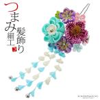 (Prices down3)成人式 髪飾り 振袖「つまみ細工かんざし 水色×紫 絞り、つまみのお花、房下がり」簪 振袖用髪飾り お花髪飾り 成人式 結婚式 (メール便不可)