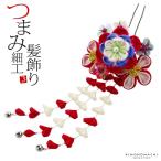 成人式 髪飾り 2点セット「赤色のつまみ、お花」振袖髪飾り つまみ細工かんざし お花髪飾り 成人式 振袖 卒業式 袴<H>