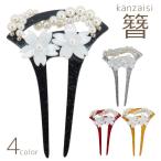 髪飾り かんざし 和装 パール 二本差し かわいい 簪 バチ型 レディ 黒ビーズなし