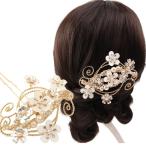 髪飾り 結婚式 成人式 振袖 和装 かんざし パールラインストーンラメ桜簪 ゴールド 袴 卒業式 着物 入学式 ヘアアクセサリー ウェディング
