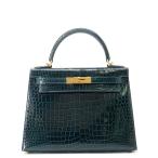 HERMES ハンドバッグ ケリー28 外縫い G金具 □G刻印 黒 クロコダイル アリゲーター 【中古】(61298)