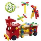 木製おもちゃ 知育玩具 組み立ておもちゃ はじめての大工さんごっこ トラック カラフル 色彩認知 指先鍛え 走行可能 ネジ止め
