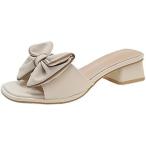 チャンキーヒール ミュール サンダル レディース 蝶結び スリッパ ブロック 美脚 スクエアトゥ 革靴 ゴージャス 可愛い 軽量 通気