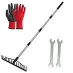 Socpuro 熊手 長柄 158cm 伸縮式レーキ スチール爪 ステンレス柄 16本爪 草刈り くまで 落ち葉 清掃 整地作業 土壌緩和 庭掃除 頑丈 軽量 草引きレーキ ガーデニ