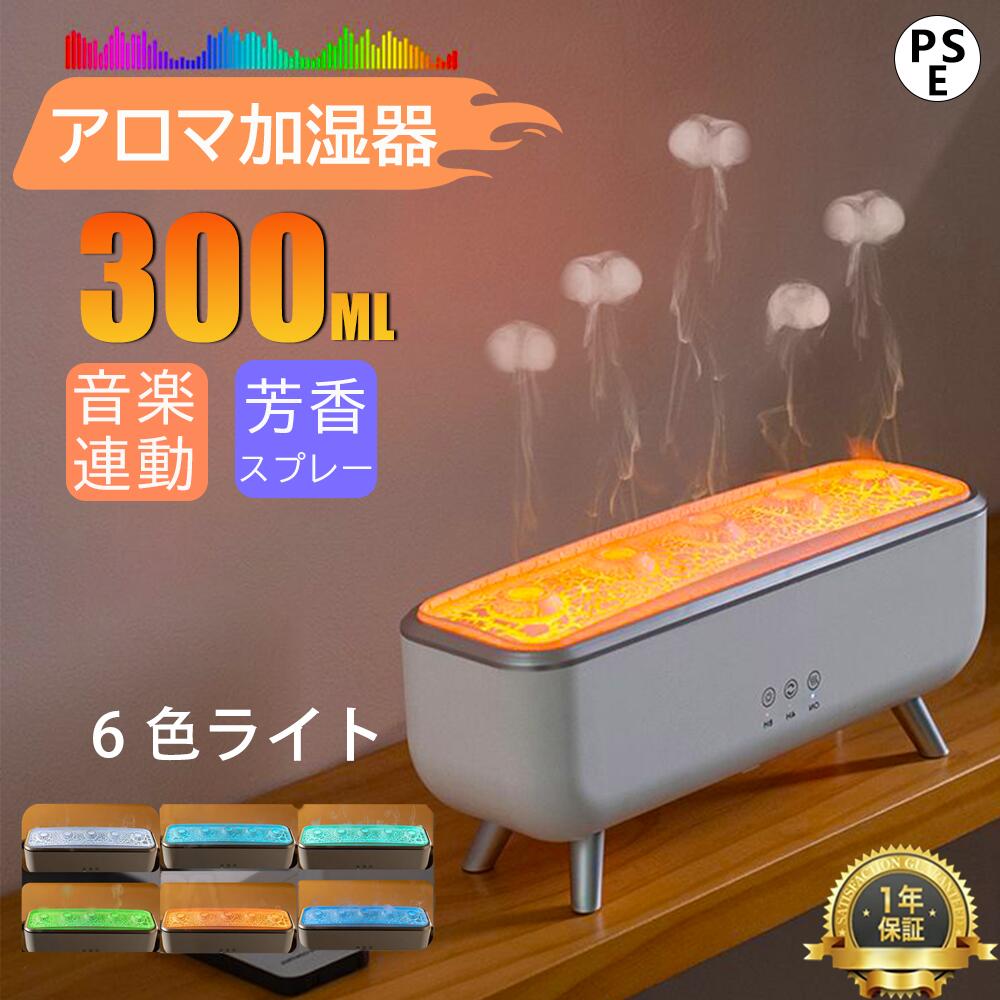 【スーパーSALE★50%OFF】【2025新品●音楽連動】アロマ加湿器 超音波 クラゲ アロマディフューザー 睡眠リラックス加湿器 リモコン付き 7色LEDライト付き 4H/8Hタイマー設定 自動シャットオフ 静音 水漏れ防止 乾燥防止 タイマー リビング/寝室/オフィス/会社用 PSE認証済