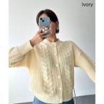 ビビッドレディ VIVIDLADY かわいいくるみボタンケーブルニットカーディガン (アイボリー)