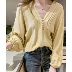 ブラウス シャツ ダブルガーゼ くるみボタン長袖ブラウス レディース
