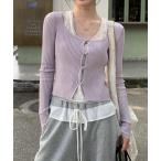 ニット セーター レースレイヤード風くるみ釦リブニット レディース