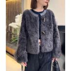 ブルゾン アウター くるみボタンフェイクファーショートブルゾン レディース