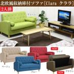 2Pソファ クララ 座面下収納付き くるみボタン ステッチ デザインソファ 北欧風 大容量 収納スペース ポールスタークッション2個付 SO-03