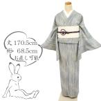 長尺ゆったり 小紋 多色縞の叩き染め 白黄緑青紫 袷正絹着物 Lサイズ 身丈170.5cm 裄丈68.5cm レディース 和装 KG11-8 中古 リサイクル