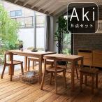 [開梱設置送料無料] 国産 ダイニング5点セット 伸長式 食卓セット Aki (アキ) 130エクステンションテーブル+チェア×4 主材:天然杢くるみ材