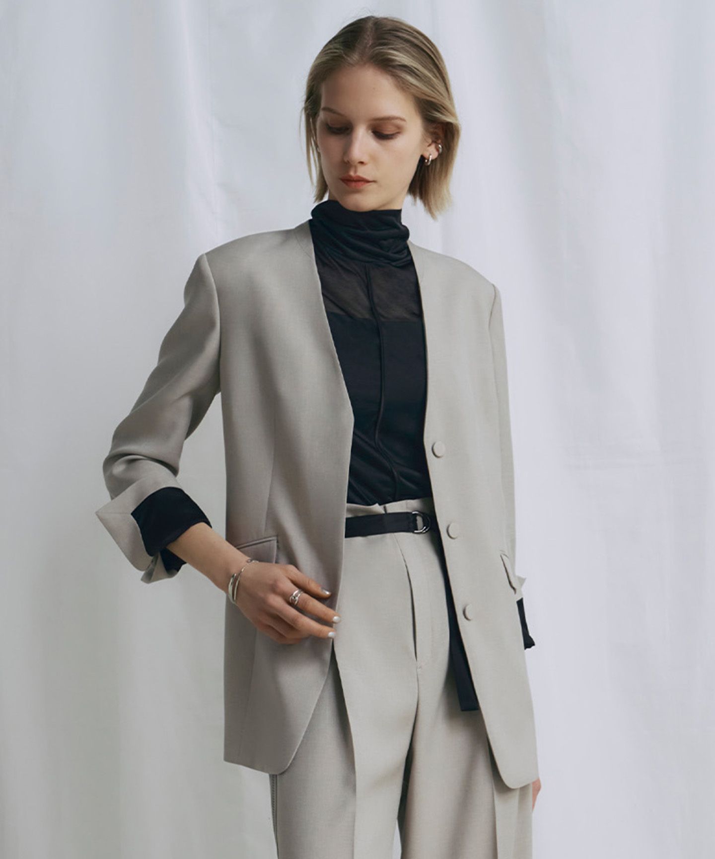 MAGALI | シェットランドウールリネン・フラットカラージャケット (ライトベージュ) | マガリ アウター
